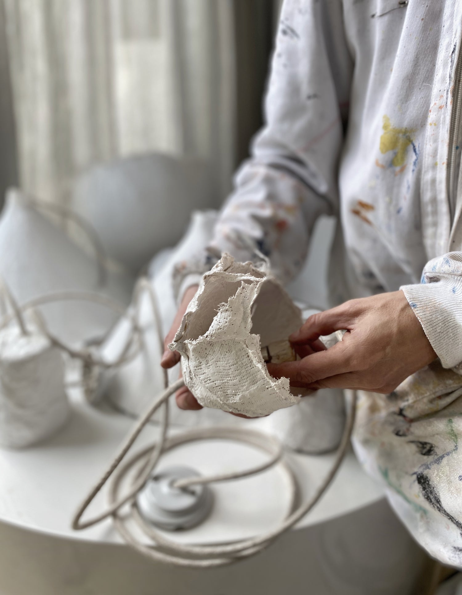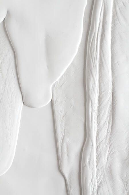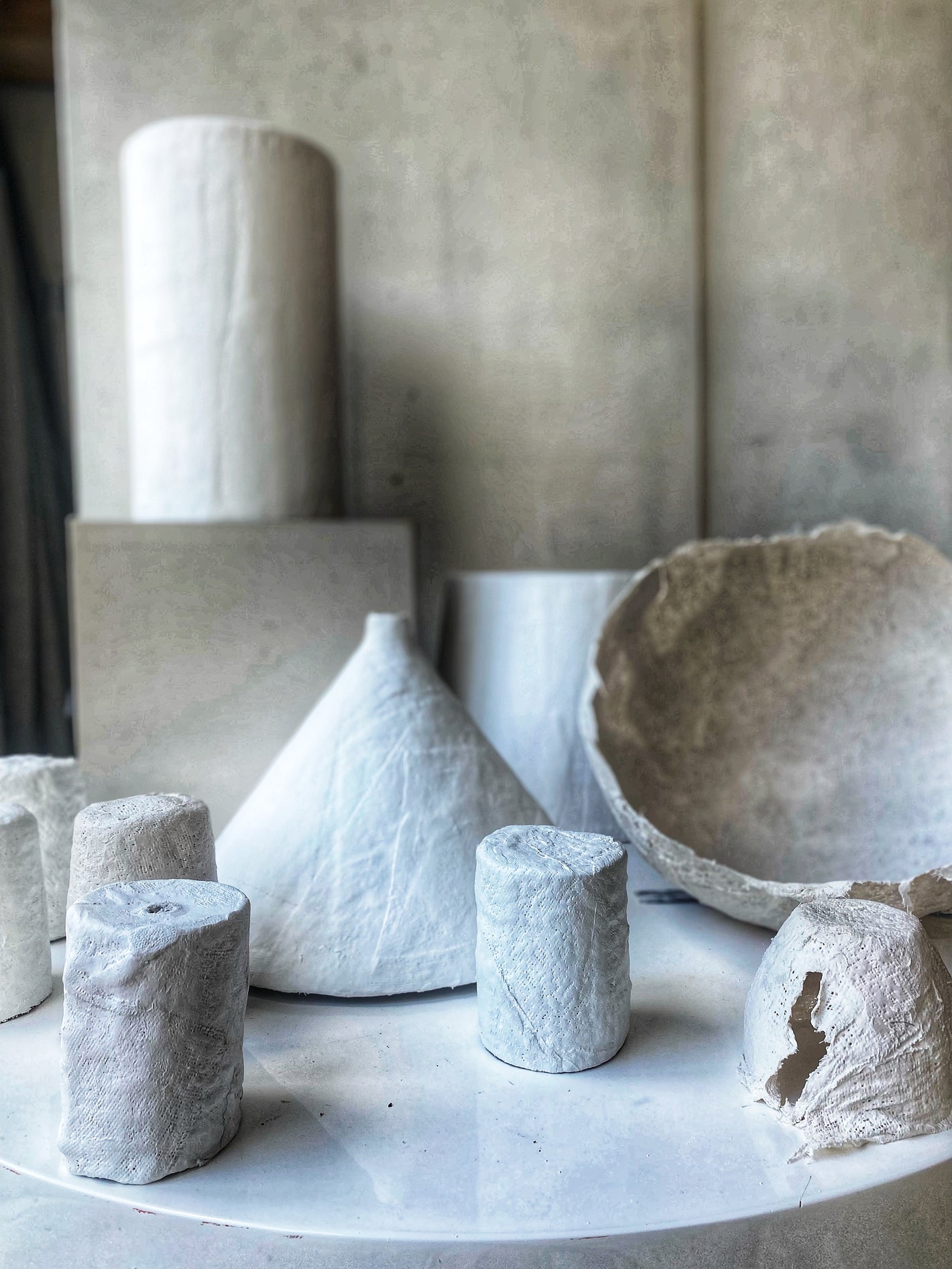 Yeso fino con acabado aterciopelado. Papel reciclado, lino y raffia para diferentes efectos. Apoyamos las prácticas sostenibles y tradicionales.